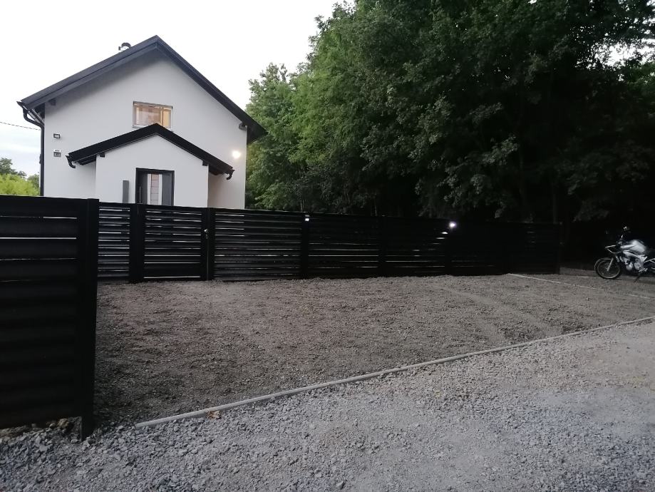 U vanjskom djelu je veliko dvorište od 1100m2, te veliki parking za automobile.
