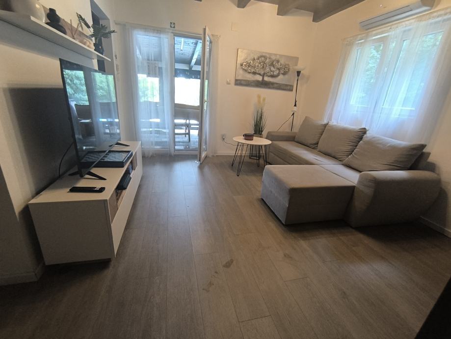 Imamo ledomat, dva frižidera, aparat za kavu te ostale potrebne kućanske aparate. Kuća je u potpunosti opremljena sa svim potrebnim sadržajima, kuhinja (pribor za jelo, tanjuri, pećnica, ploča za kuhanje, kuhalo za vodu, hladnjak za hranu, svi mogući začini, kava, šećer, mlijeko - nije potrebno donositi svoje, kupaona (ručnici, sredstva za osobnu higijenu, sušilo za kosu), dnevni boravak (stol za ručanje, kutna garnitura, LCD TV).