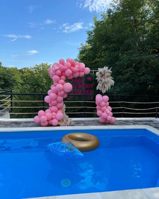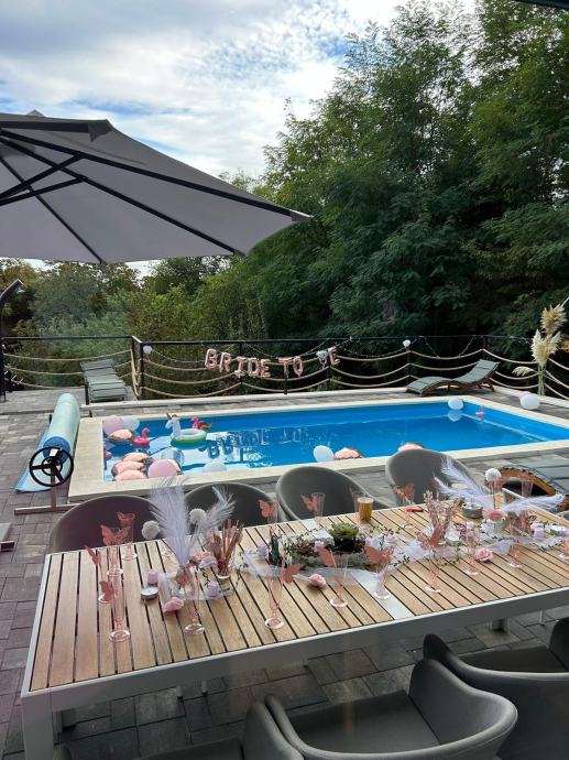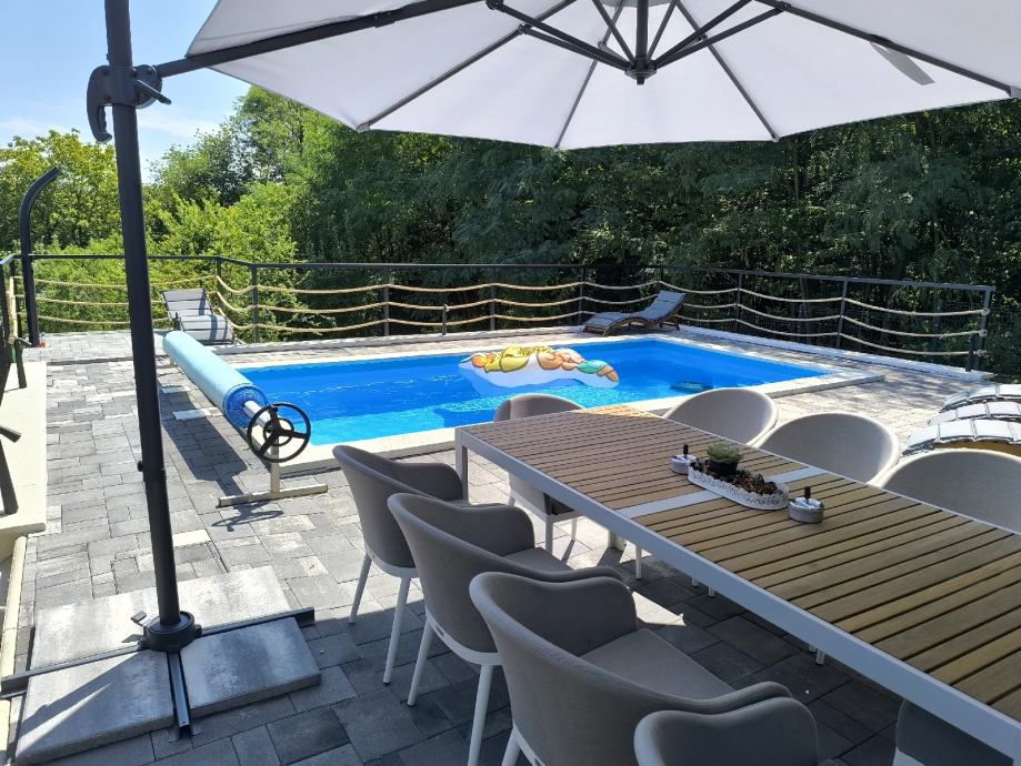 ●Uz bazen su ležaljke, vrtna garnitura sa stolom, te suncobrani