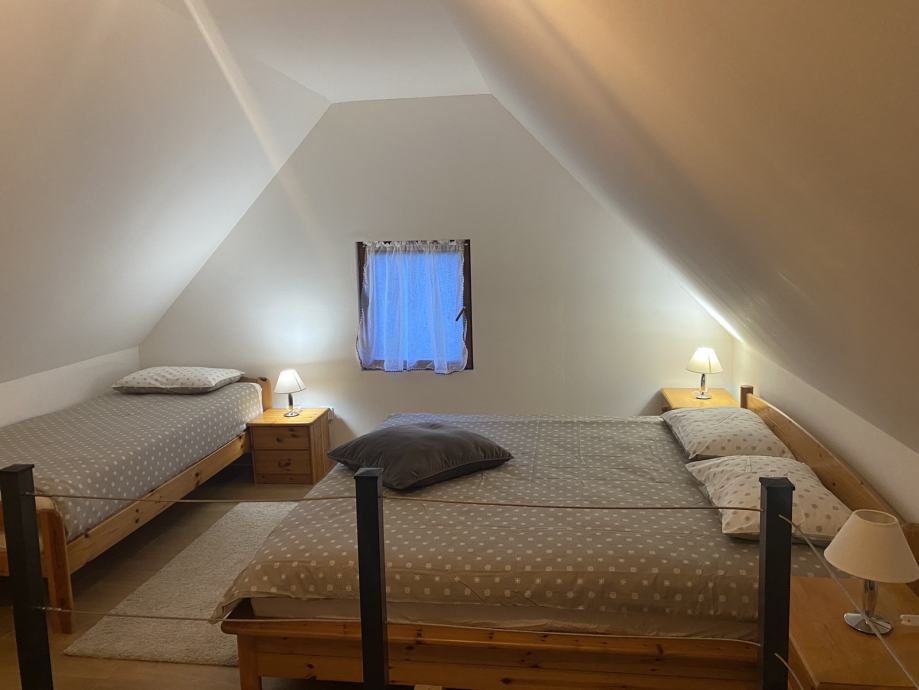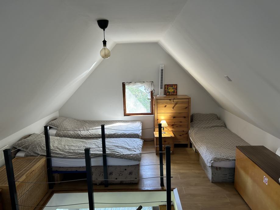 -Kuća se sastoji od prizemlja gdje se nalazi potpuno opremljena kuhinja s blagovaonicom i dnevni boravak te kupaona s WC-om, a na gornjem katu je spavaći dio.