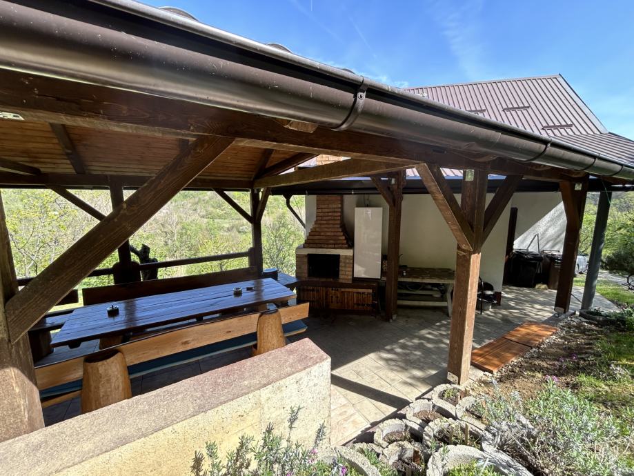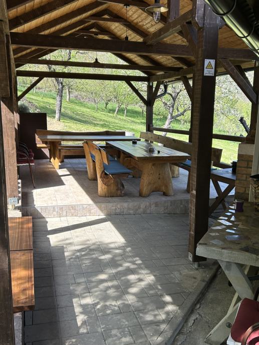 -Ispred kuće je otvorena terasa 20m2, a uz kuću se nalazi drvena sjenica veličine 30m2 s roštiljem.