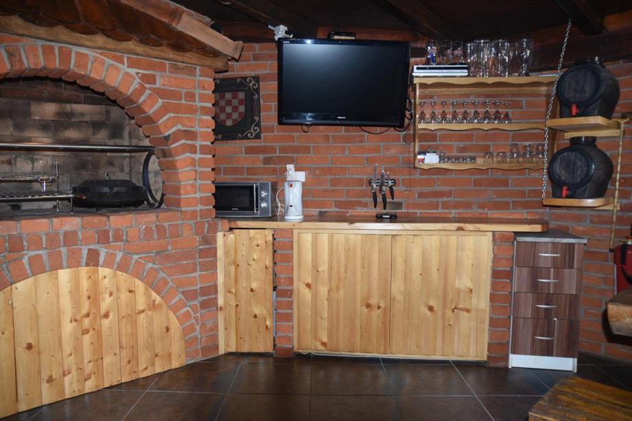 Iznajmljuje s drvena kuća sa velikom zatvorenom terasom (staklena stjena ) okućnicom i voćnjakom te sator kapaciteta 40-50gostiju ..Sama kučića je veličine 5x3, te zatvorena terasa 8x4prizemlju je potpuno opremljena kuhinja sa velikim ugostiteljskim hladnjakom, te sjedeća kutna garnitura i TV, a u potkrovljuju se nalazi ležaj. Na terasi se nalazi masivni stol za cca 25 gostiju , vrtni roštilj,(plinski roštilj 80x50)roštilj u samoj pečenjari 80x50 pečenjara za odojke ,peka ,kotao za kotlovinu 95 cm .Plitki duboki tanjuri 60 kom 4grijane posude za meso( 60x40)BanjaMarija .Objekt ima dva led tv, kucno kino,dvd .Novouređena kupaonica i WC.... Posjed je ograđen čempresima tako ga gosti imaju maksimalnu privatnost.Za dječje rođendane imamo u ponudi trapolin ,, dječji šator te ljuljačku .Za veču grupu ljudi nudimo spavanje 10 km udaljeno oglas (13814267) (13813148)Šifra og