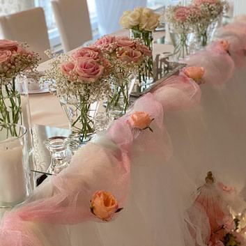 Nudimo Vam uslugu kompletnog uređenja prostora, te ćemo prema Vašim željama osmisliti jedinstvenu proslavu Prve pričesti Vašeg djeteta. Naš stručni tim pobrinut će se kako bi Vaša proslava Prve pričesti ostala zapamćena. Na Vama je dragi gosti da bezbrižno uživate u svojoj proslavi.