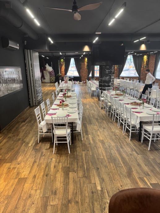 Prostor se nalazi na Žitnjaku(III Struge 15)i u potpunosti je opremljen za održavanje svih vrsta proslava i eventa,od rođendana do poslovnih domjenaka.Prostor je velicine 150m2,maksimalan kapacitet je do 100 osoba a postoji mogucnost otvaranja drugog djela prostora koji je onda sveukupne velicine 400m2 sa maksimalnim kapacitetom do 250 osoba.