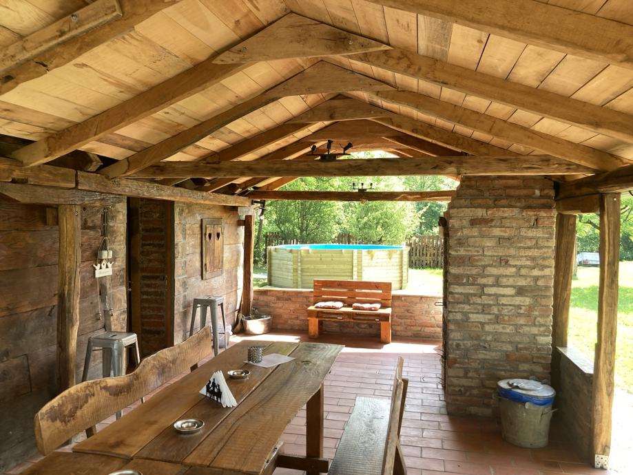 Na korištenje dostupan roštilj sa drvima za potpalu, te kotlić.