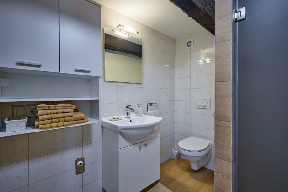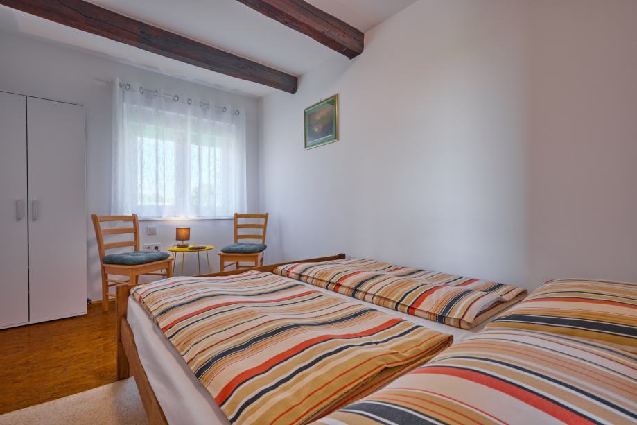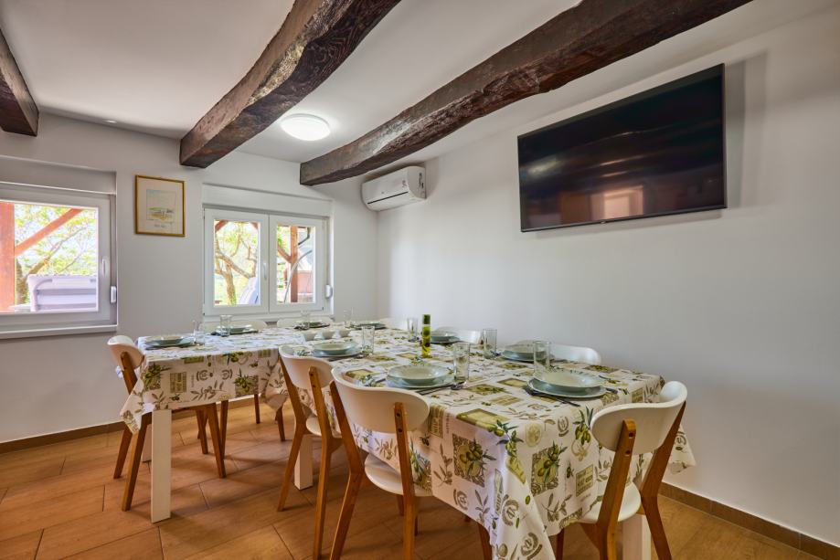 U kući može spavati 11 (+ 4)osoba. Dvorište je uređeno i ograđeno, a dio terase je natkriven. Varijanta s dvorištem idealna je za sve koji planiraju boravak na otvorenom po lijepom vremenu.