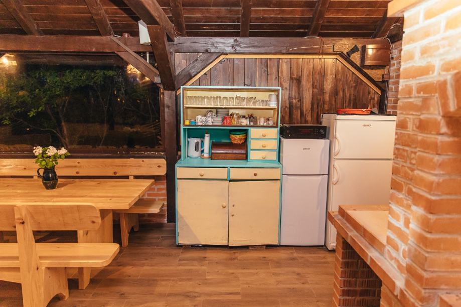- Dva frižidera, posuđe (beštek, veliki i mali tanjuri, duboki tanjuri), čaše, kuhalo za vodu, rešetka za roštilj, velika peka