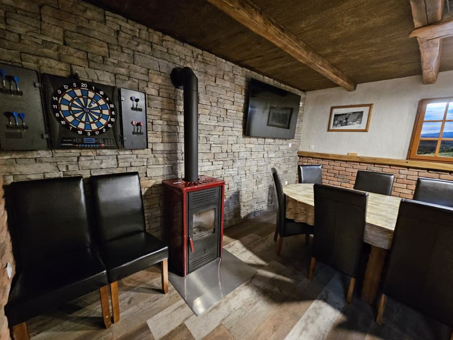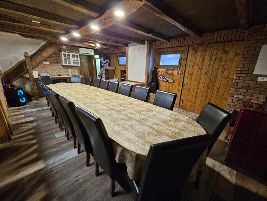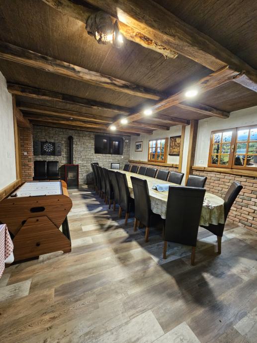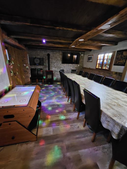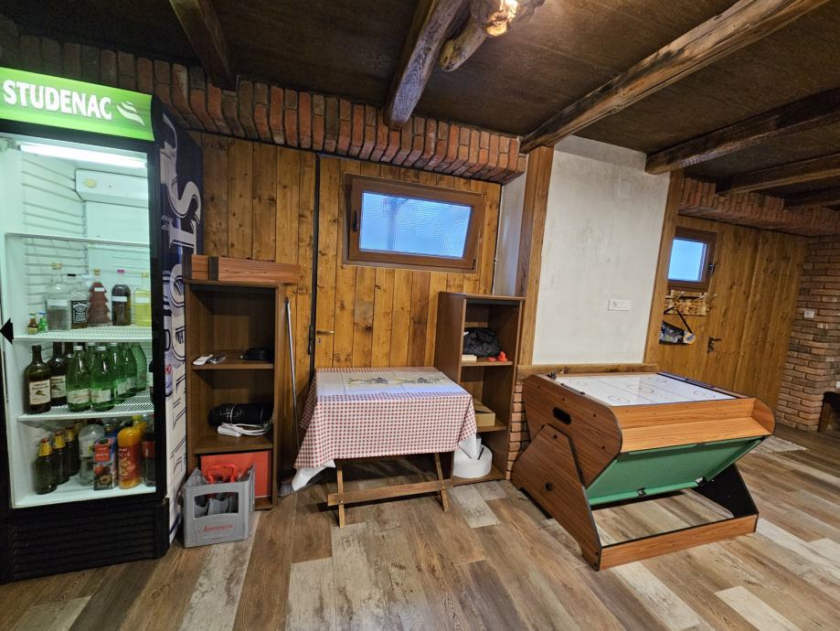 Prostor ima kuhinju, veliki ugostiteljski frižider, wc muški i ženski + za invalide, zvučnik + karaoke, disco kuglu, stolni nogomet, ice hockey, mini biljar, TV, projektor.