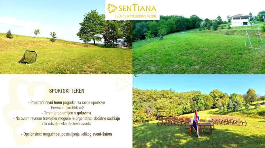 PRIVATNI EVENTI: Skladan prirodan ambijent za nezaboravne trenutke na svim vašim događanjima: od vrhunskih izleta po vašim željama, do proslave vašeg najposebnijeg dana - vjenčanja. SENTIANA vam pruža jedinstven ugođaj i za proslavu rođendana - za djecu, za mlade ili za odrasle, ali i za proslavu krštenja, prve pričesti, krizme, diplome, zaruka, godišnjica... i svih onih životnih trenutaka koje želite upamtiti samo po najboljem.