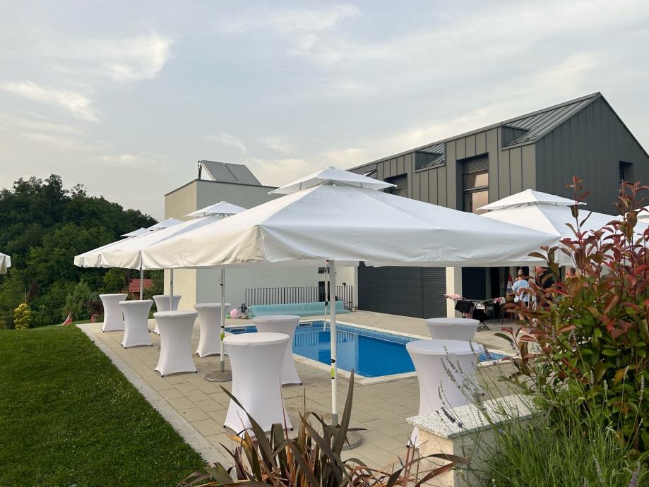 - bijeli ugostiteljski suncobrani 3,5x3,5m
