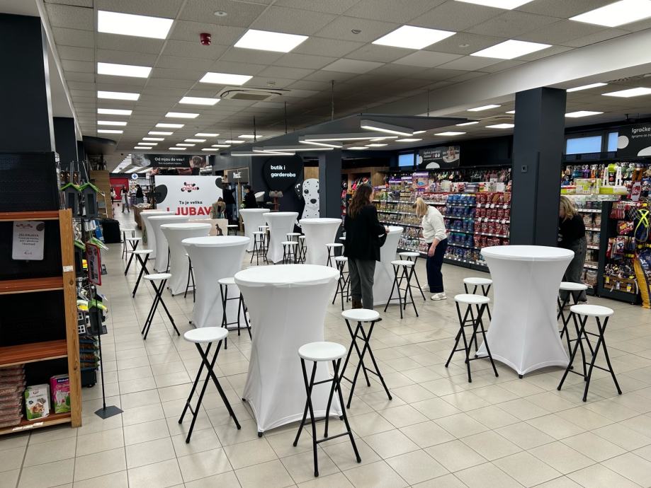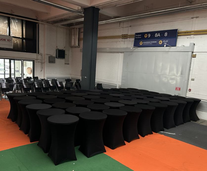 - barski stolovi Ø80cm (s bijelim i crnim navlakama)