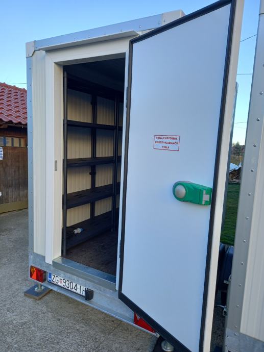 U hladnjači su ugrađene police, izo panel 4 cm debljina radi na 220 v, radna temperatura od 3'C