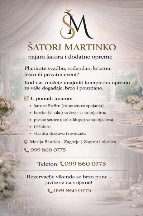 NAJAM ŠATORA I OPREME ZA EVENTE – SATORI MARTINKO