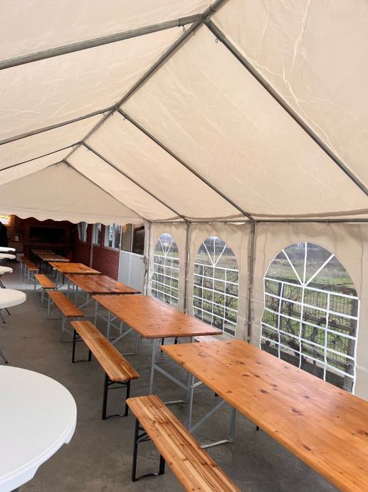 Iznajmljujemo šatore, stolove i dodatnu opremu za sve vrste proslava: vjenčanja, evente, rođendane, zabave, krizme, pričesti, domjenke i ostala okupljanja.