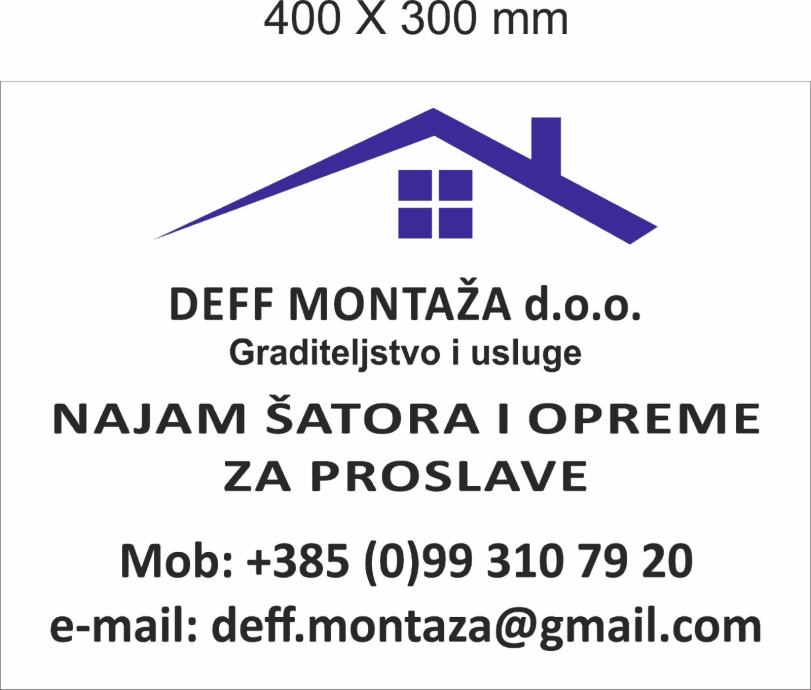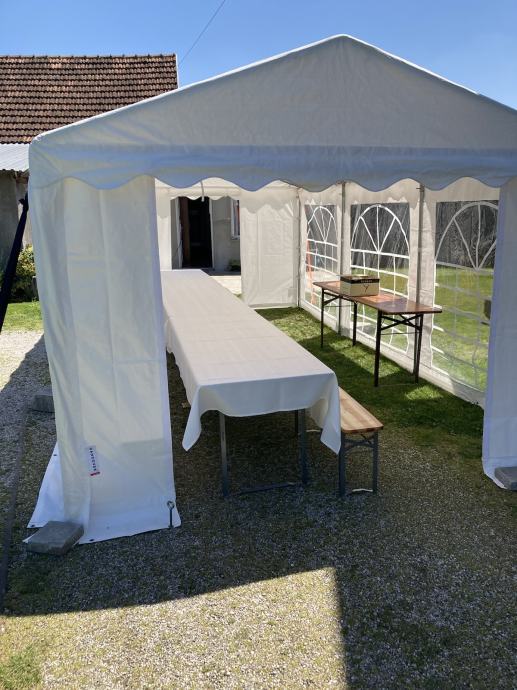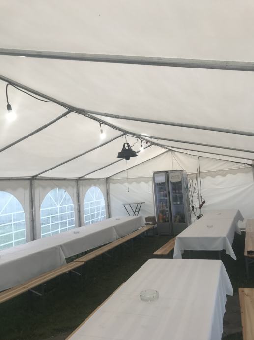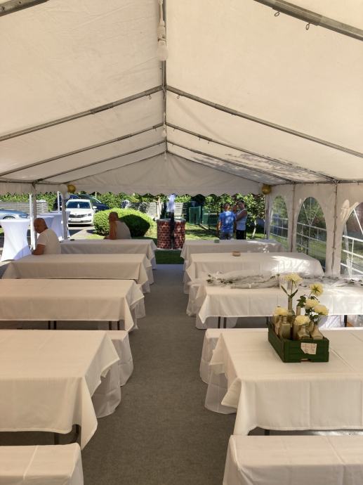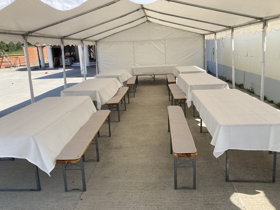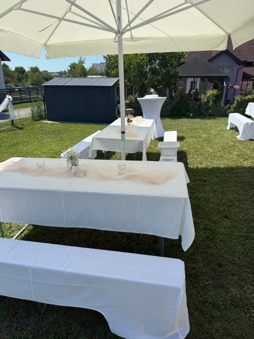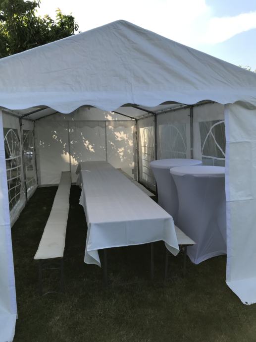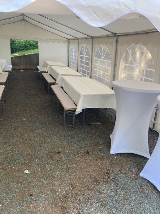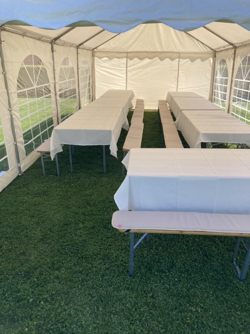 Iznajmljujem šatore dimenzija 3x6 , 4x8 5x8 ,5x10 , 6x12 metara, pivske setove dimenzija 80x200 s stoljnjacima i bijelim