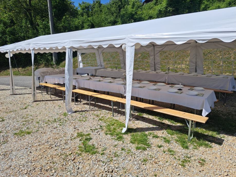 •Stolove i klupe (pivski setovi) sa ili bez stolnjaka – udobni, praktični i čvrsti