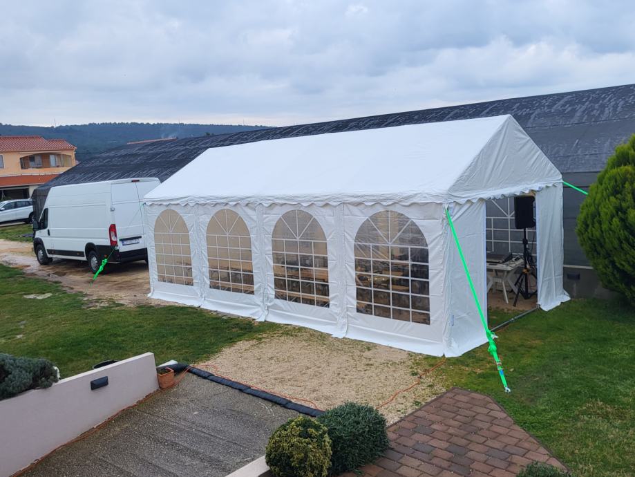 Šatori su bijele boje s bočnim prozorima koji se mogu otvoriti ili zatvoriti ovisno o vašim željama.