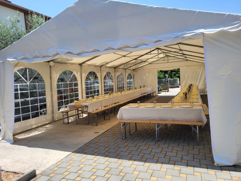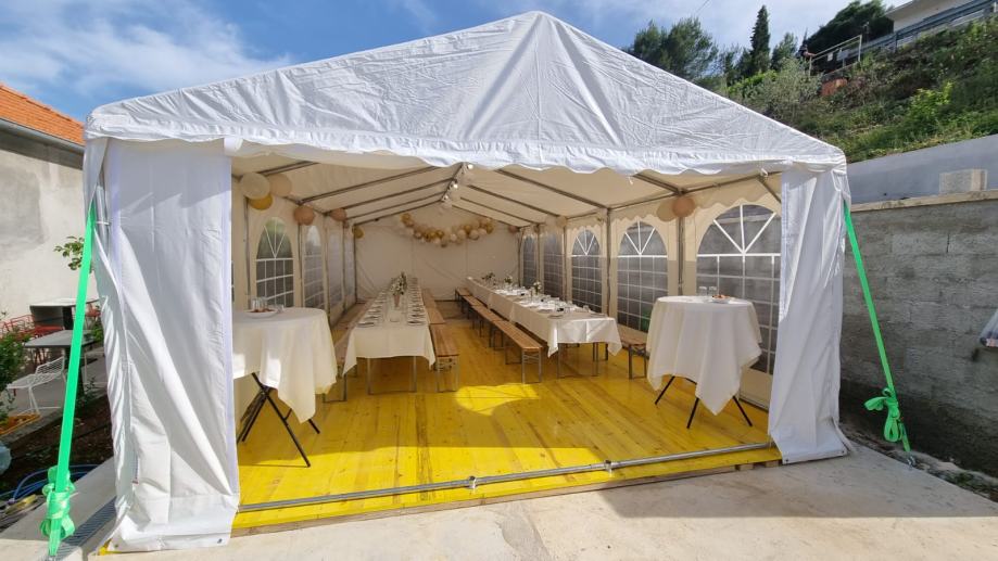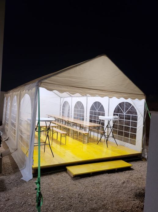 Iznajmljujemo šatore, drvene podnice i ostalu opremu za sve vrste prigoda (krštenja, vjenčanja, djevojačke, momačke, rođendani i sl.)