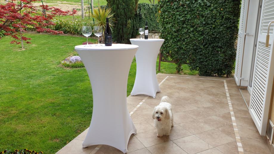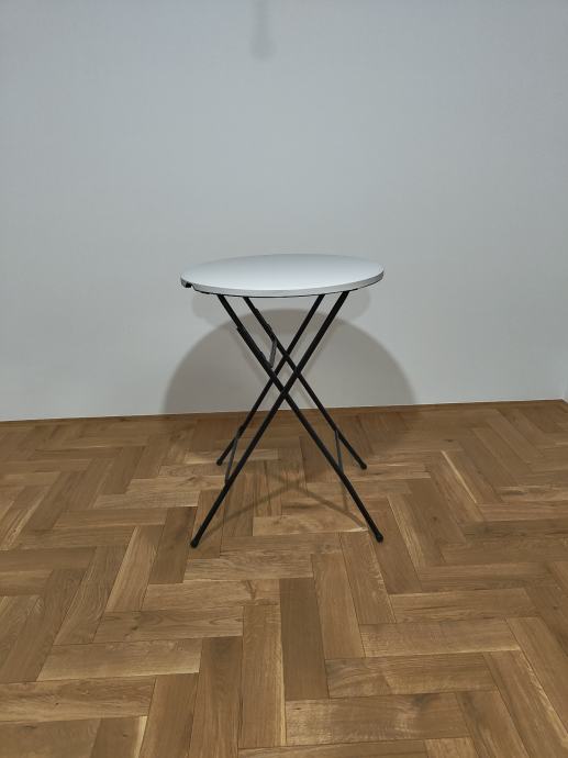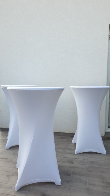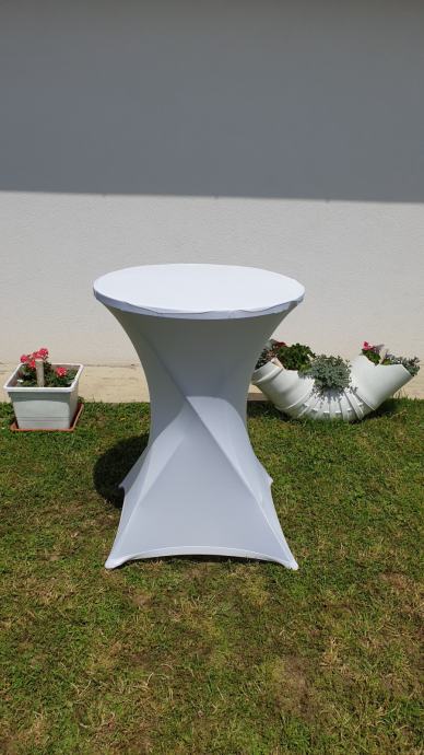 Posjedujemo 2 vrste stolova, prvi su promjera 70cm (prve fotografije), a stolovi sa fotografije 6 na dalje su promjera 80cm. Cijena najma je ista za sve.