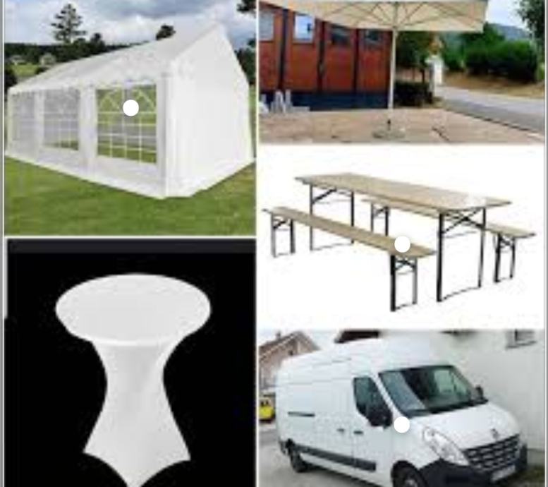 U ponudi imamo preko 40 šatora i pagoda, barske stolove, pivske setove, napuhance, suncobrane, ukrasne baldahine, rasvjetu, stolove za catering, rashladne vitrine, stolice, stolnjake i navlake, beštek, tanjure, čaše itd.