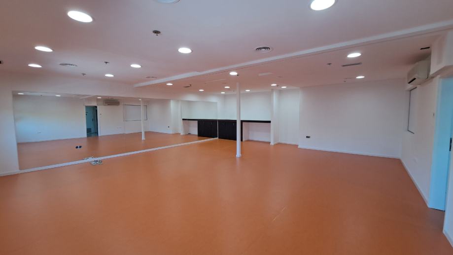 Dvorana sa sportskim podom, RGB rasvjetom. 66 m2, 25,00 € + PDV po satu.