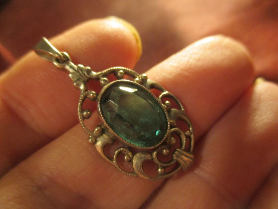 Jugendstil privjesak sa zelenim kamenom, srebro 835, 2 žiga