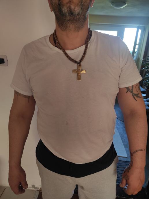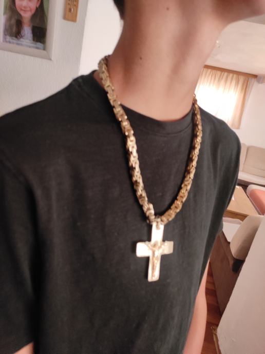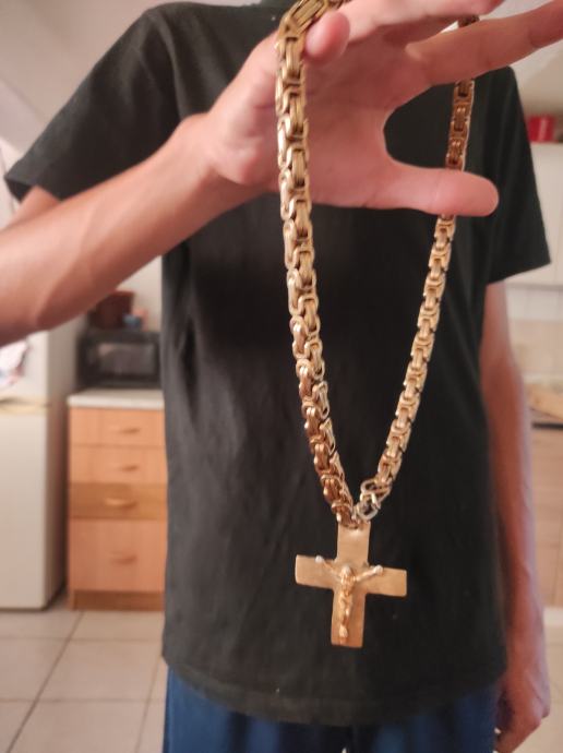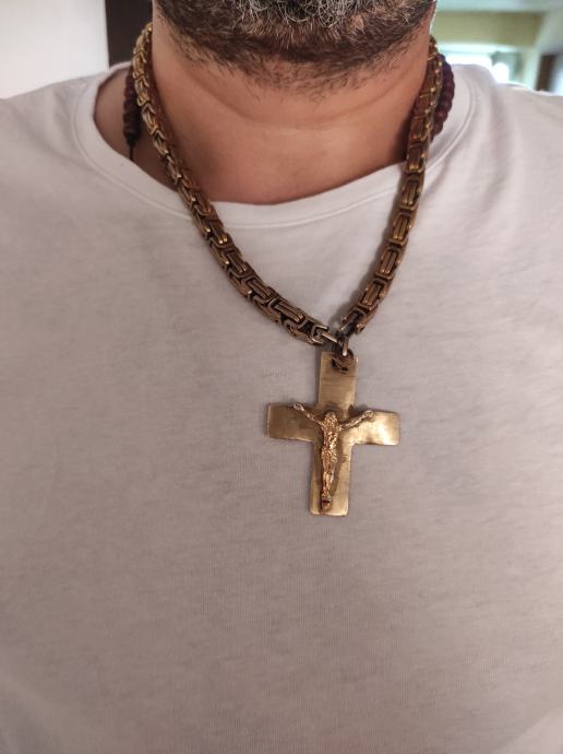 bez kopce,ovako 13.Pogledajte slike,identično zlatu sve isto,ja sam ga nosio na lancu i nitko nikada nije posumnjao da nije zlato.Mozete me dobiti porukama na Viber ili njuskalo ili me nazovite,inače provjeravao sam od čega je i definitivno je od Bronce.Slike koje cete vidjeti se odnose samo na KRIŽ,lanac za sada nije na prodaju( htio sam dočarati kako križ stoji na lancu), stvarno dobar,ponekad ga očistiti u octu ili sl isto kao zlato. Sirok 6 cm ,isto i dugacak 6 cm.Pogledaj slike!!