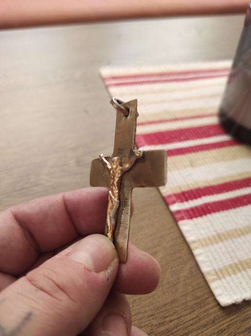 KRIŽ - PRIVJESAK OD BRONCE,DOBIO GA NA POKLON NA MORU OD JEDNOG STRANCA IMA 10 GRAMA