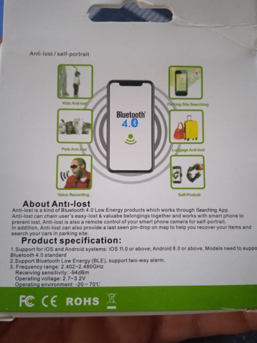 Zahtjevi za Bluetooth: najmanje 4.0. Radi s 1 baterijom CR2032.