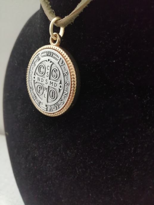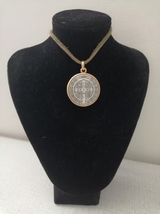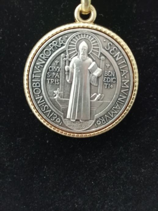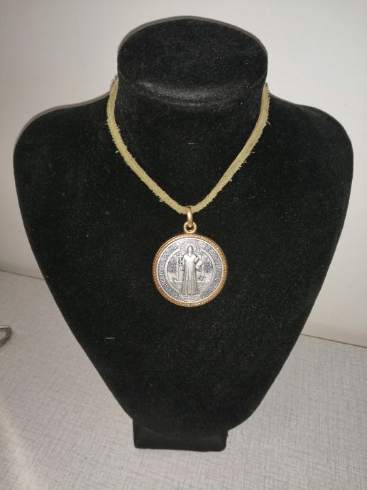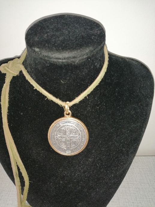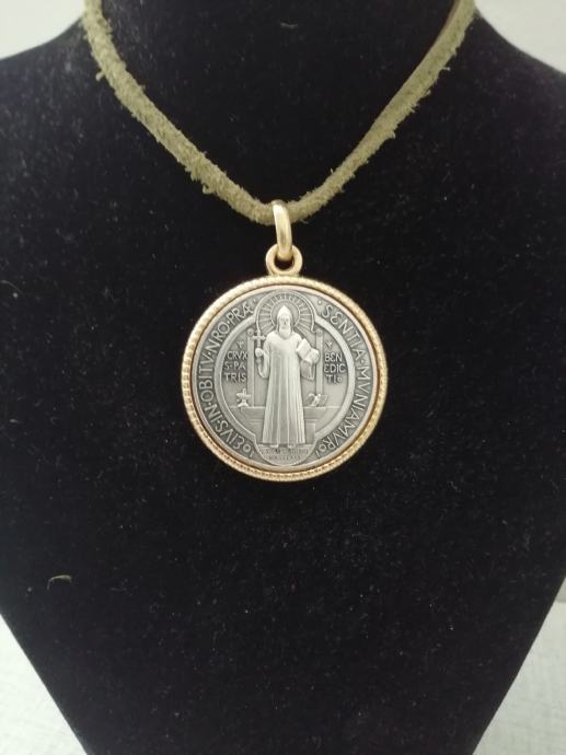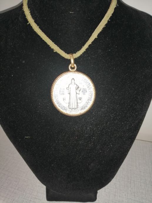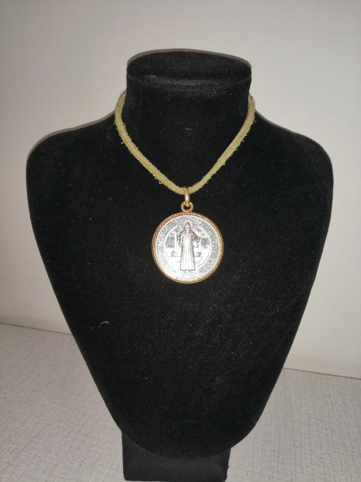 Medaljon sveti Benedikt,posrebren,rub pozlaćeni, bogatog izgleda, težine 30 gr. zaštitnik europe, vrlo interesantan,medaljon na koži, promjer medaljona 40 mm.Pogledaje i ostale moje oglase, šaljem poštom, tekući