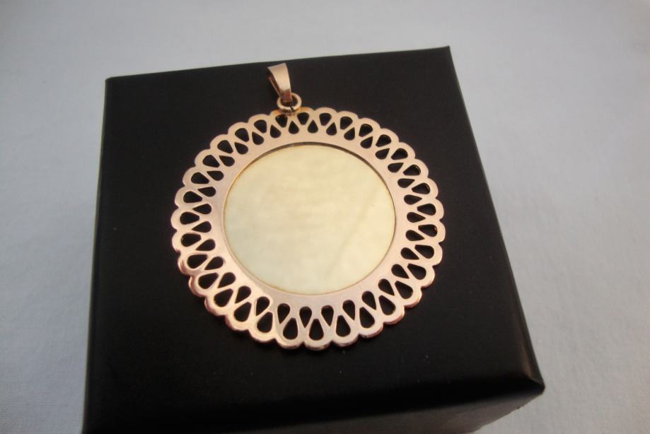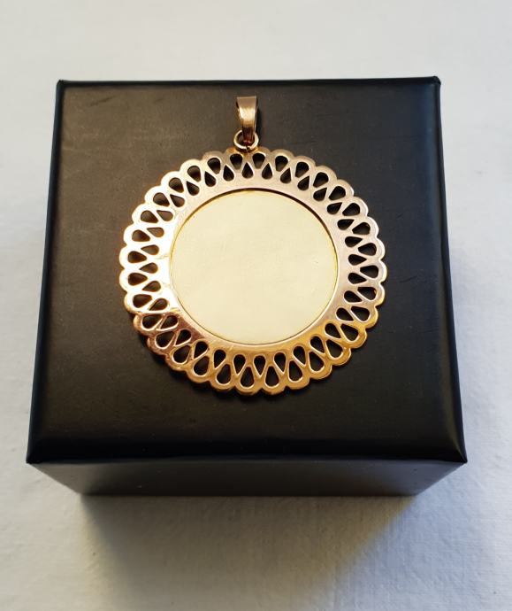 Privjesak je veoma lijepo stare izrade te dimenzije od 4,1 cm sa alkicom a promjera 3,6 cm ukupne težine 7,01 grama