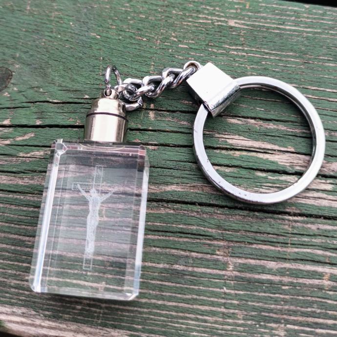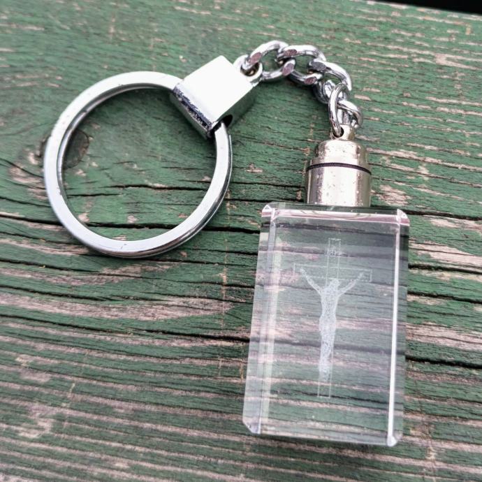 PRIVJESAK - Laserski ugravirani Isus na križu - kristalni blok - 3D privjesak
