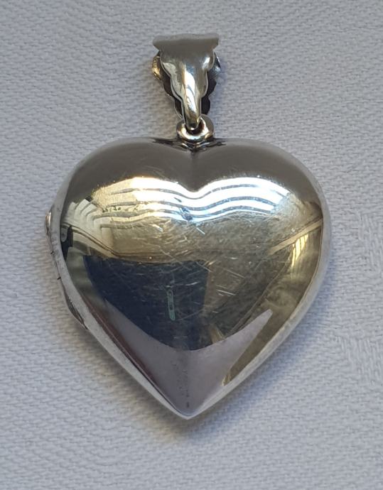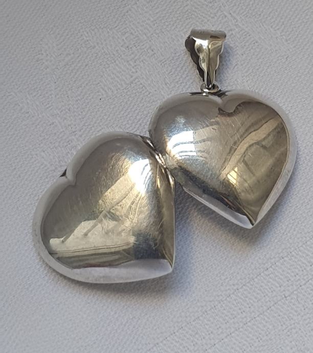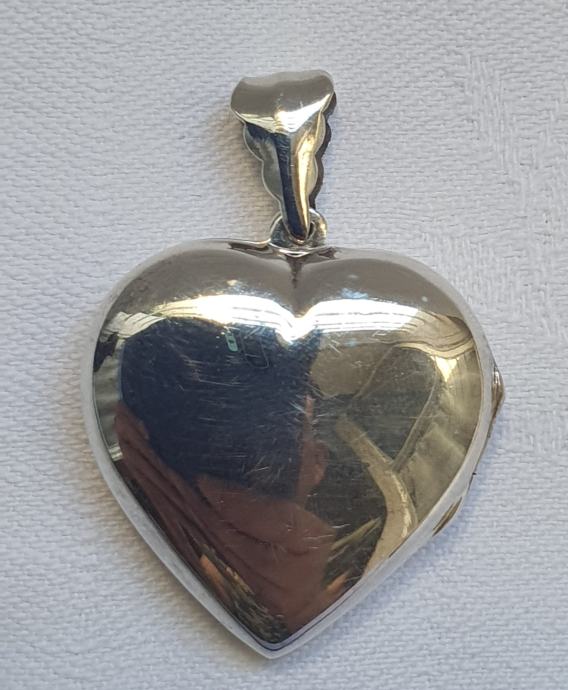 Krasni srebrni privjesak srce medaljon za dvije fotografije vosina sa alkicom 3,9 cm x 2,8cm izvrsno se otvara i zatvara unutarnja oznaka na rubu 925 nije koristeno srebro uredno čisto nije potreba poliranje