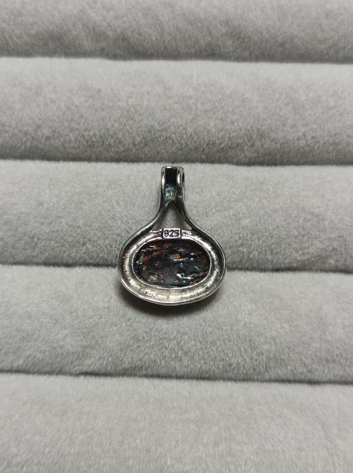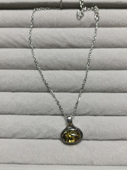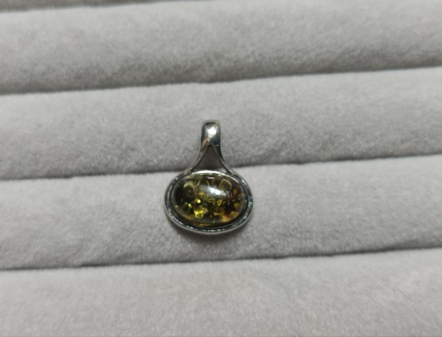 Ovalni privjesak, jantar u srebru 925, vidljiv žig.