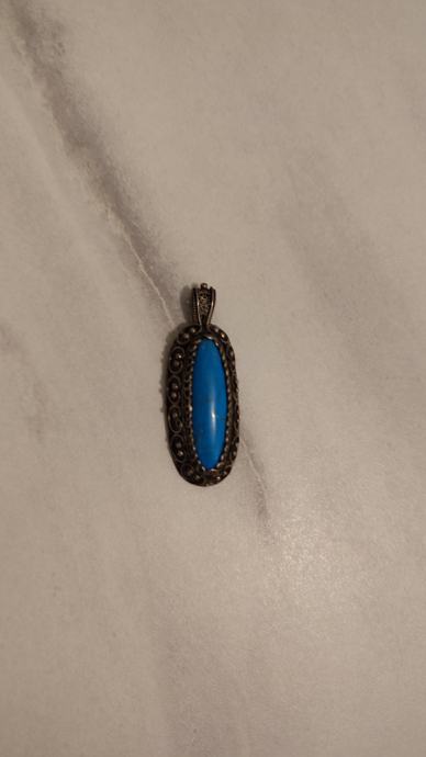 Prodajem srebrni filigranski privjesak s tirkizom, 9,20 grama. Nije nošen, očuvan.