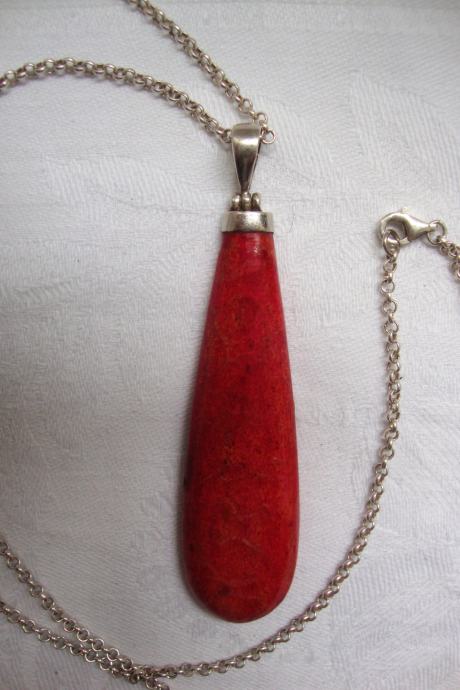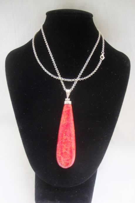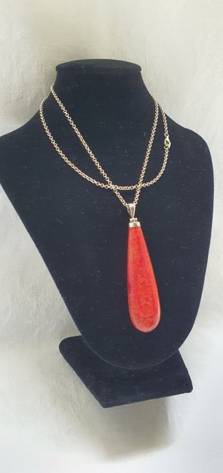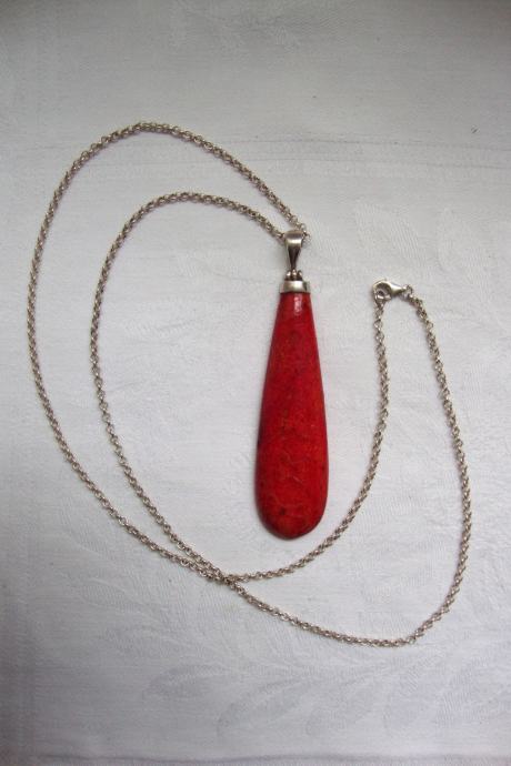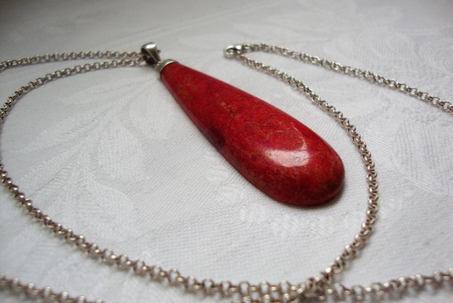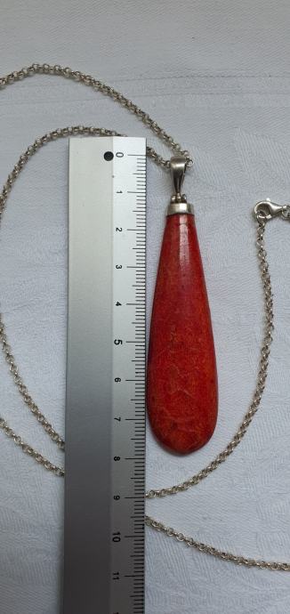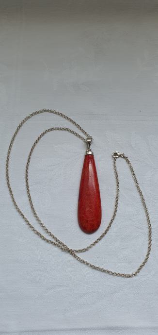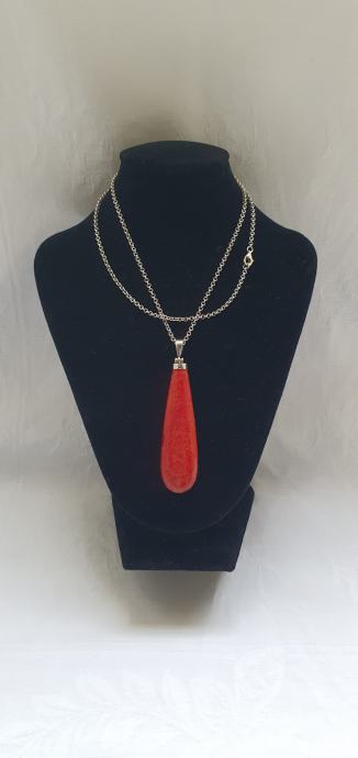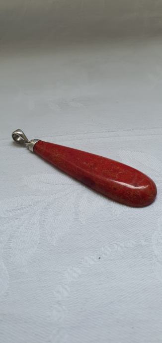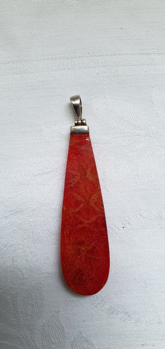 SREBRNI PRIVJESAK SA KORALJEM ,Srebro 925