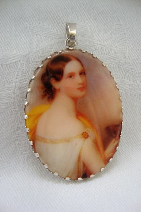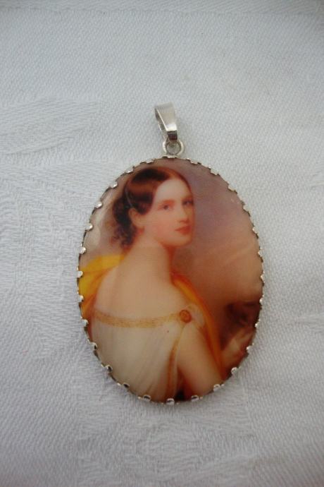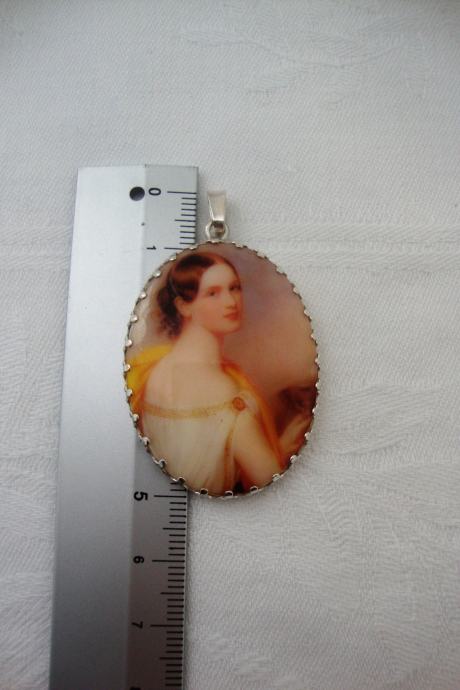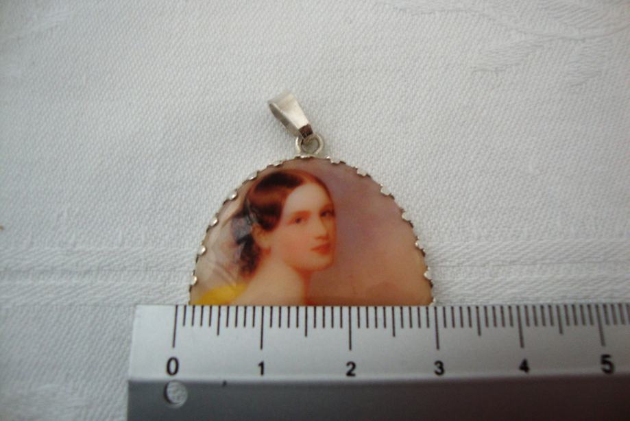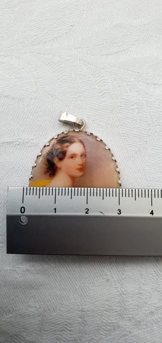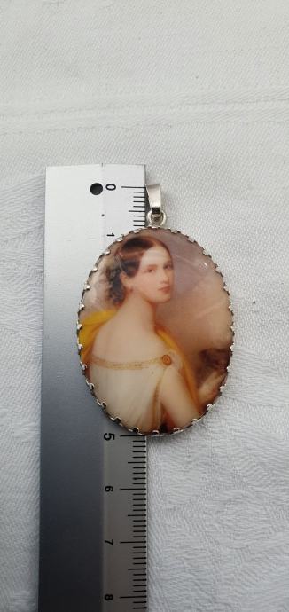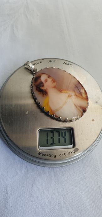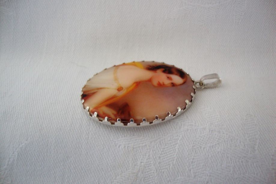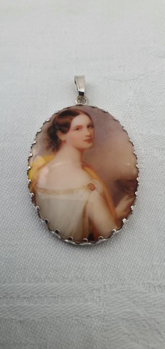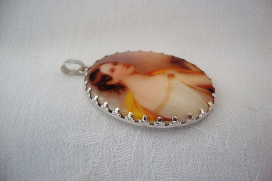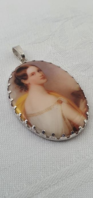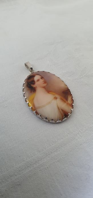 Vrlo lijepi privjesak sa portretom srebro 835 između dva rata art deko