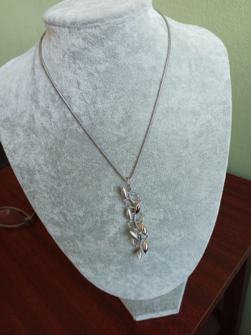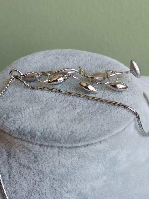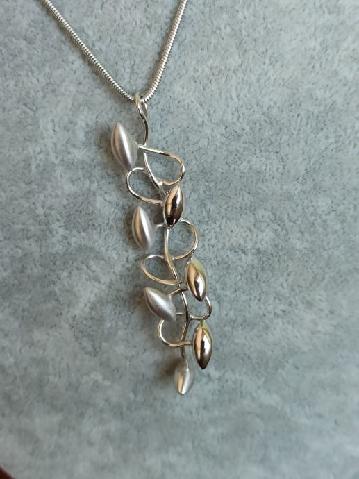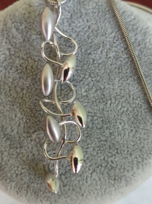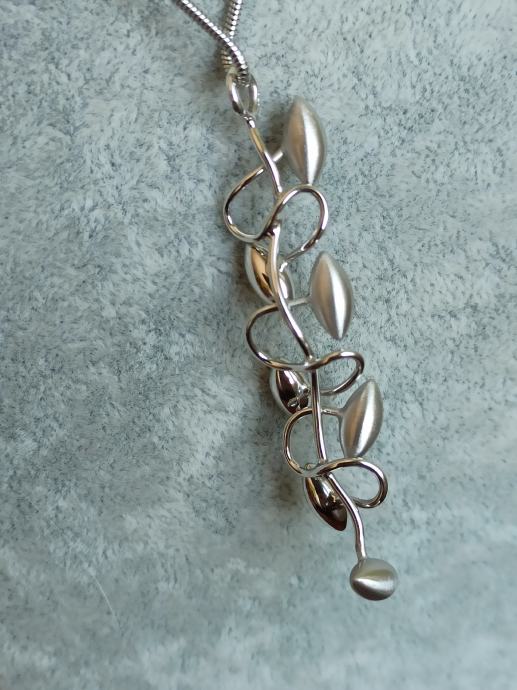Ne nošen srebrni privjesak, u dva tona, mat i sjajni, modernistički dizajn, oznaka 925 na slikovit.