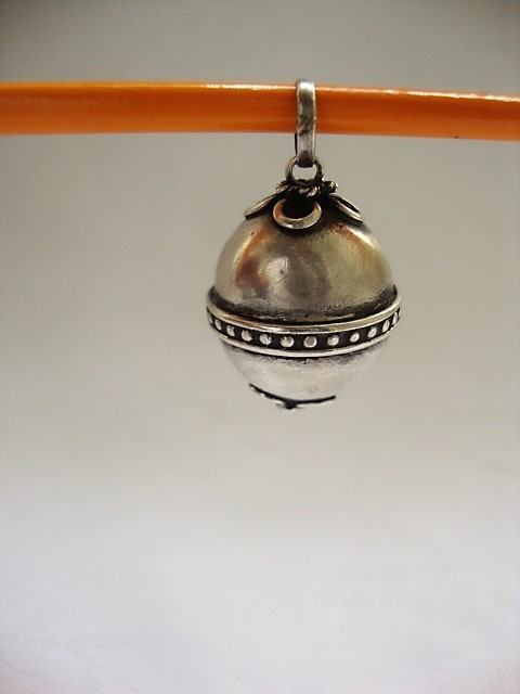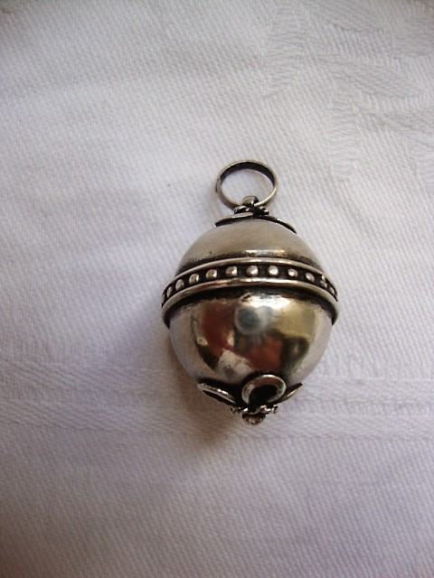 Krasan srebrni privjesak oblika jaja ukrašen po sredini i u dnu starosti preko 100 godina stara patina se da očistit