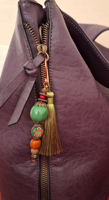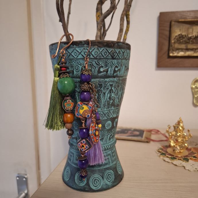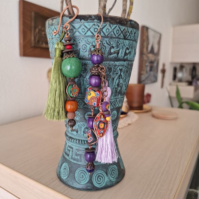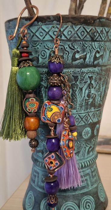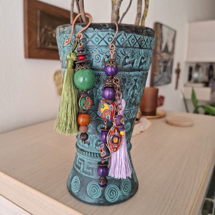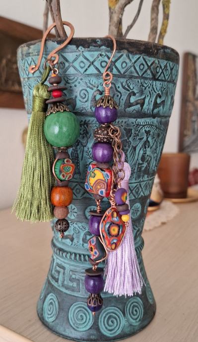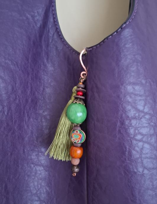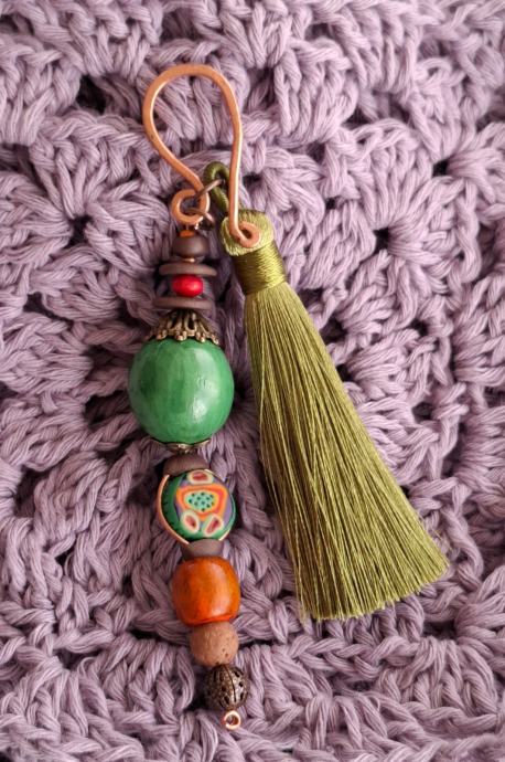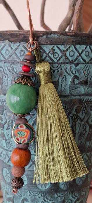 Izrađen od ručno rađenih perlica od polimerne gline,drvenih perli, resice te bakrena žice.