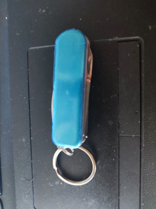 Prodajem novi nikad korišteni višenamjenski privjesak dimenzije dužine 5,5 cm , širine 2 cm, debljine 2 cm. Privjesak sadrži nožić, grickalicu, škarice, turpijicu sa odvijačem.
