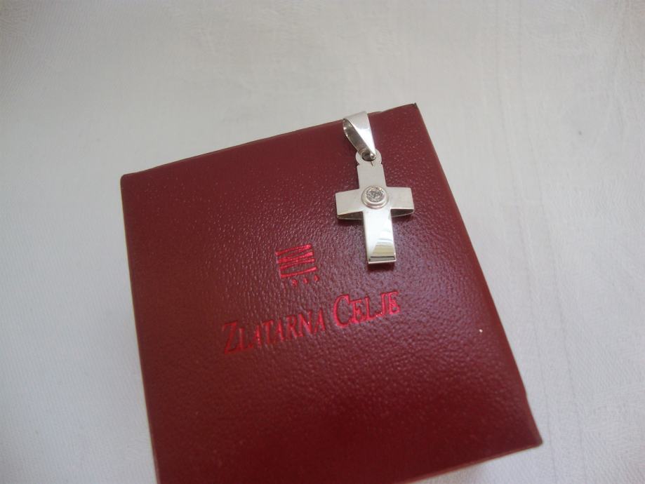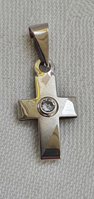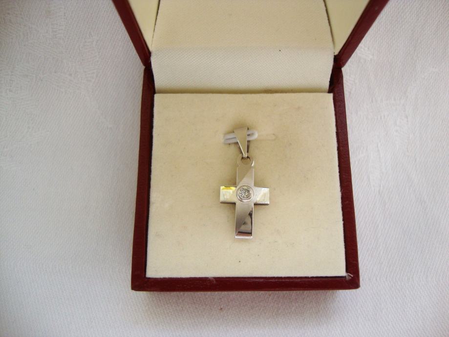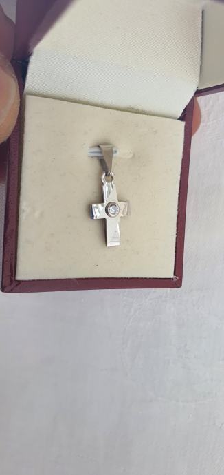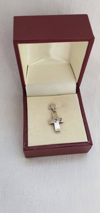 Krasan mali križič 585 bijelo zlato ukrašeno kamenćićem nije nošen idealan za poklon