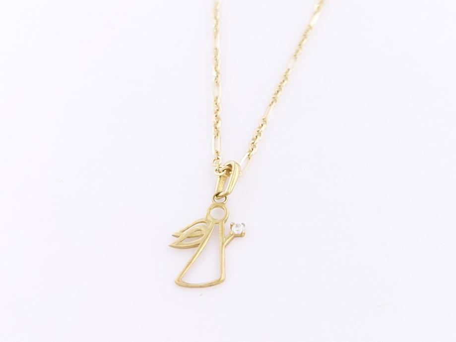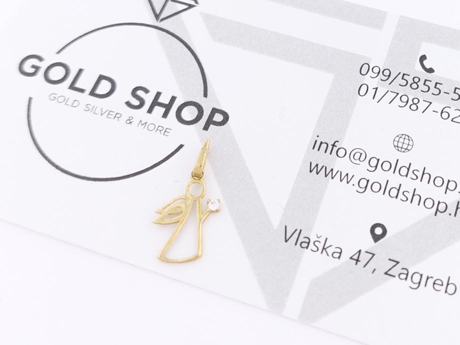 Zlatni privjesak anđeo,žuto zlato, 8K, žig 333, 1 bijeli cirkonić