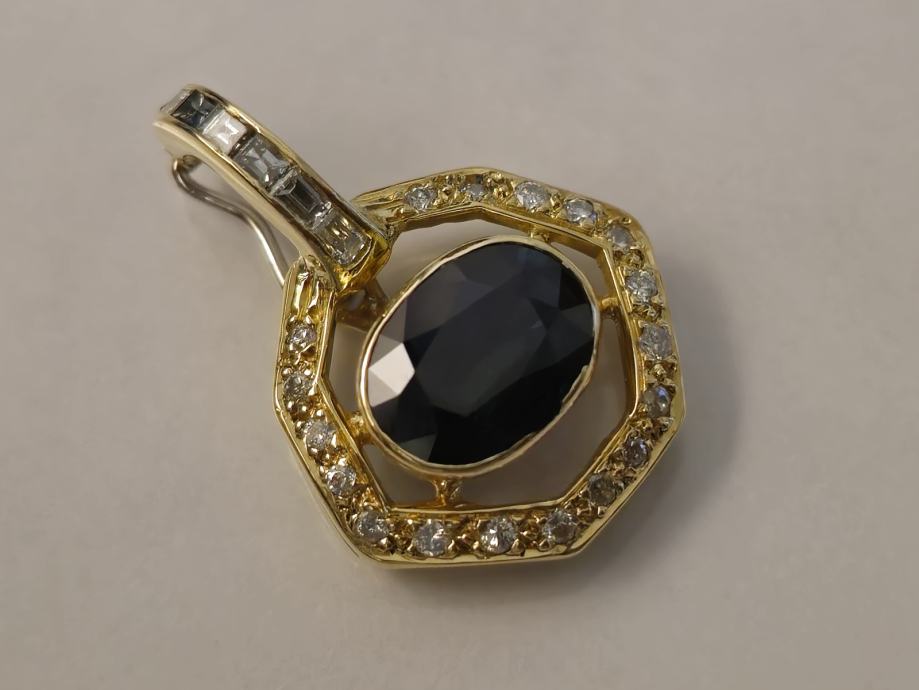 Prodajemo zlatni privjesak od 18 karatnog zlata ukrašen dijamantima.