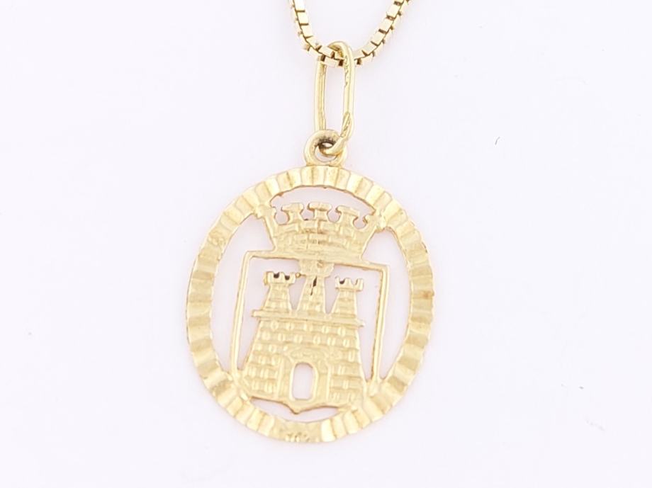 Zlatni privjesak grb grada Zagreba, ovalnog oblika, žuto zlato 14K, žig 585.