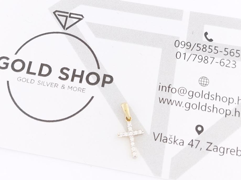 ZLATNI PRIVJESAK KRIŽIĆ S CIRKONIMA 14K (585) 0,42g NOVO • GOLD SHOP •