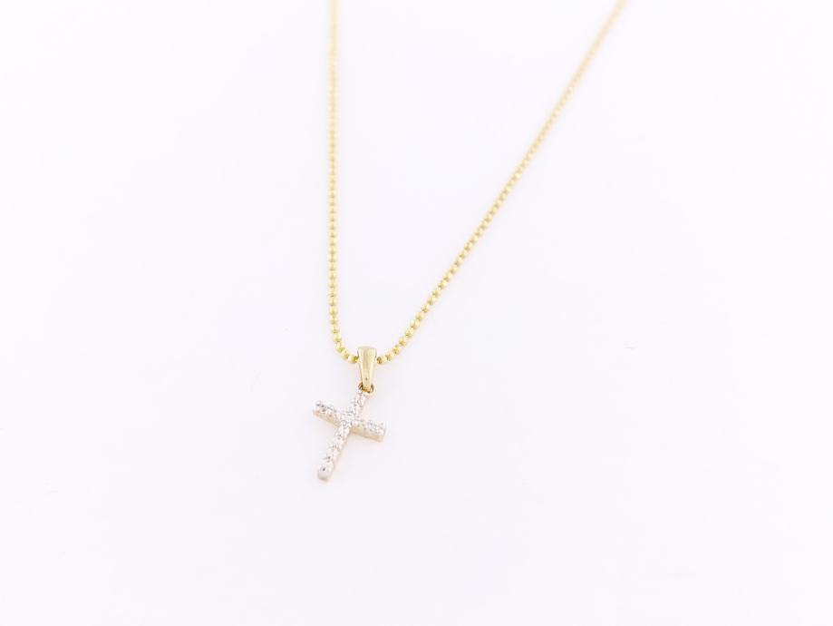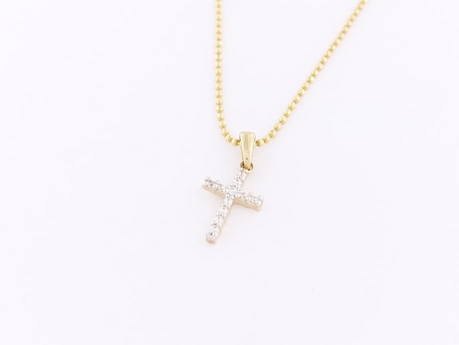 Zlatni privjesak križić, žuto zlato 14K, žig 585, sitni bijeli cirkonići.