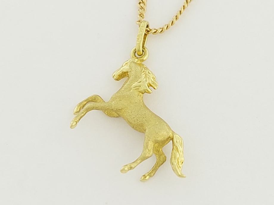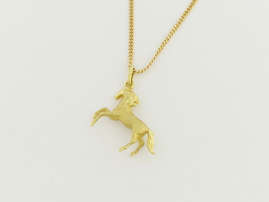 Zlatni privjesak konj u galopu, žuto zlato 14K, žig 585.
