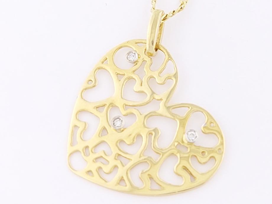 Zlatni privjesak srce, žuto zlato 18K, žig 750, mrežasta glat pločica, karika za lančić na njenoj desnoj strani.