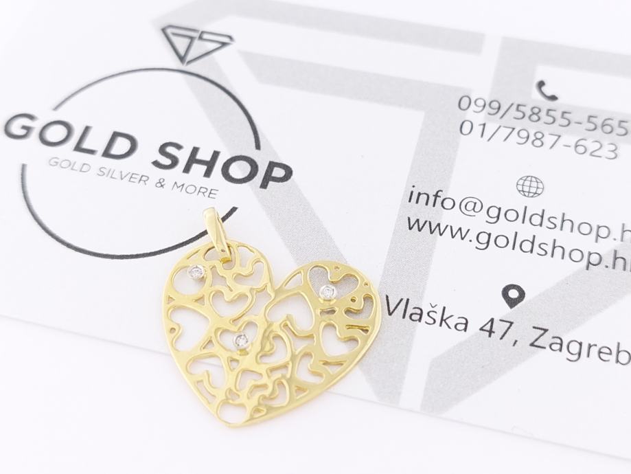 ZLATNI PRIVJESAK SRCE S DIJAMANTIMA 18K (750) 1,68g NOVO • GOLD SHOP